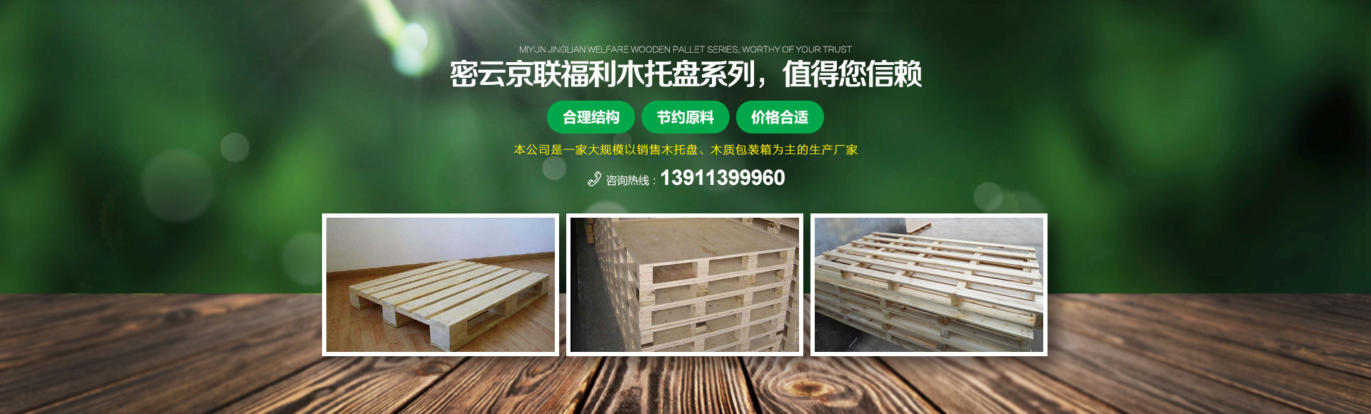 北京京聯(lián)國(guó)順木制品有限公司 (原北京市密云縣京聯(lián)福利木制品廠)成立于1993年,位于北京市密云縣西田各莊鎮(zhèn)蒼頭村,占地約5000平米。我公司工廠是一家大規(guī)模以銷(xiāo)售木托盤(pán)為主的生產(chǎn)廠家。本工廠是一家直接采購(gòu)原木,按客戶要求生產(chǎn)規(guī)格尺寸的托盤(pán),我公司工廠位于河北省承德市有著木材加工點(diǎn),可以做到,從山上的木頭下山到客戶手中的托盤(pán)都是一手貨,減少了中間商的費(fèi)用,所以我公司售出的產(chǎn)品對(duì)北京這個(gè)龐大的市場(chǎng)來(lái)說(shuō)在同樣的規(guī)格尺寸的托盤(pán)來(lái)說(shuō)價(jià)格比較占優(yōu)勢(shì)。